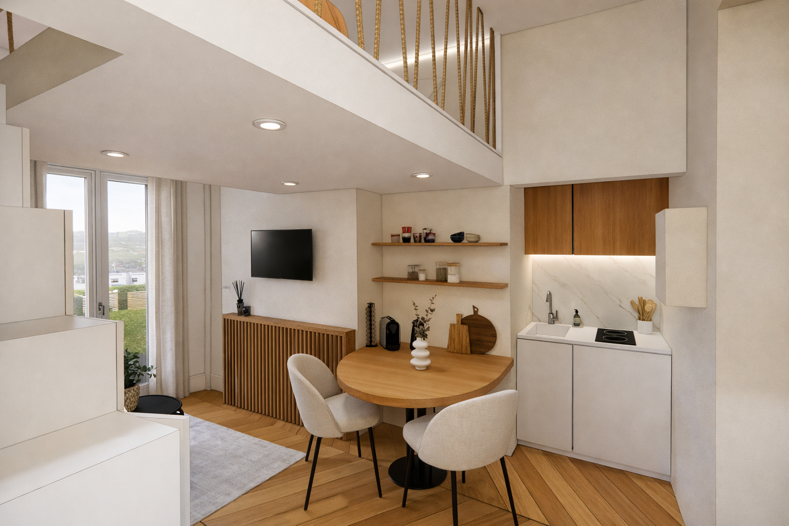 Un petit espace repensé et optimisé grâce à une mezzanine et des aménagements sur-mesure